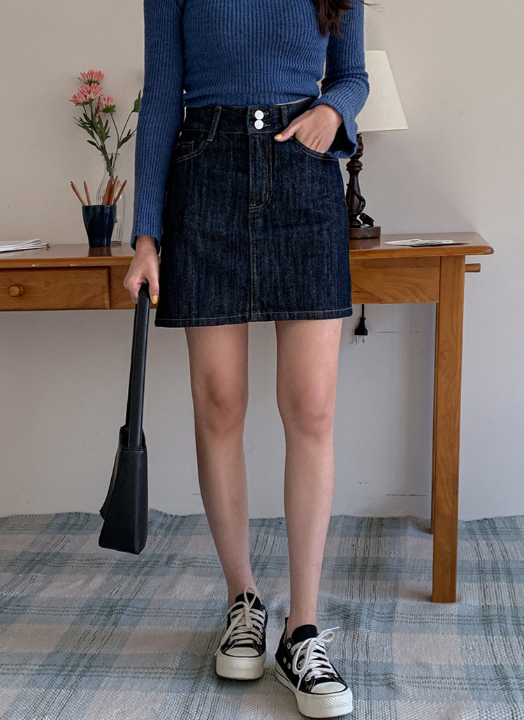 Aラインスリムショートツーボタンミニデニムスカート春夏秋冬 スカート デニムスカート Envylook エンビールック ファッション総合通販 Dholic
